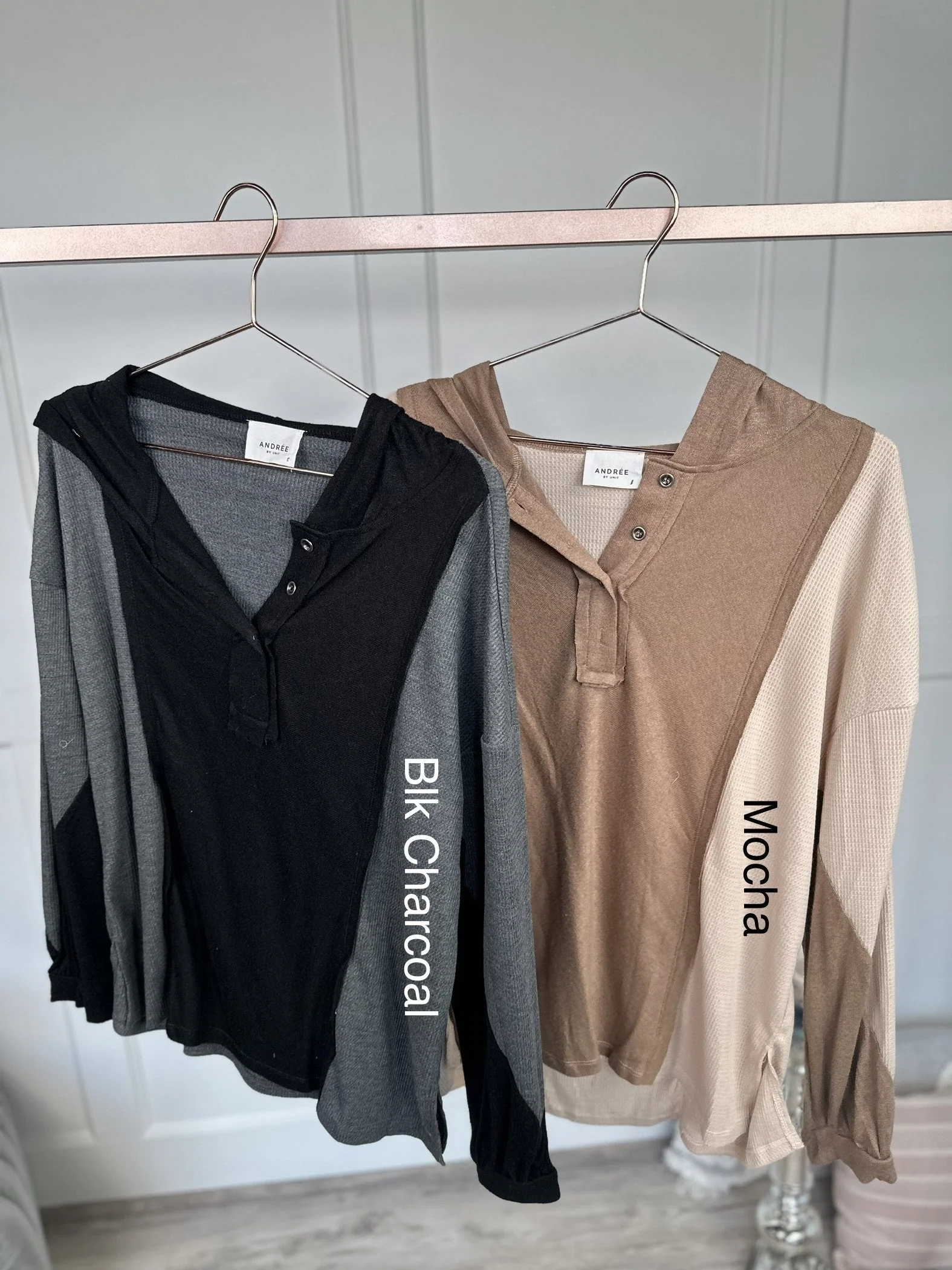 Elevate your style with The Warm Comfort Hoodie from Andree by Unit. This ultra trendy number is a mix media hoodie knit top with hoodie detail and button closure on front. We love the bubble sleeves with oversized fit. Easy, flowy, ready for transitional weather in this cozy knit material. Pair with your favorite leggings and fuzzy boots for a laid back and cozy outfit.