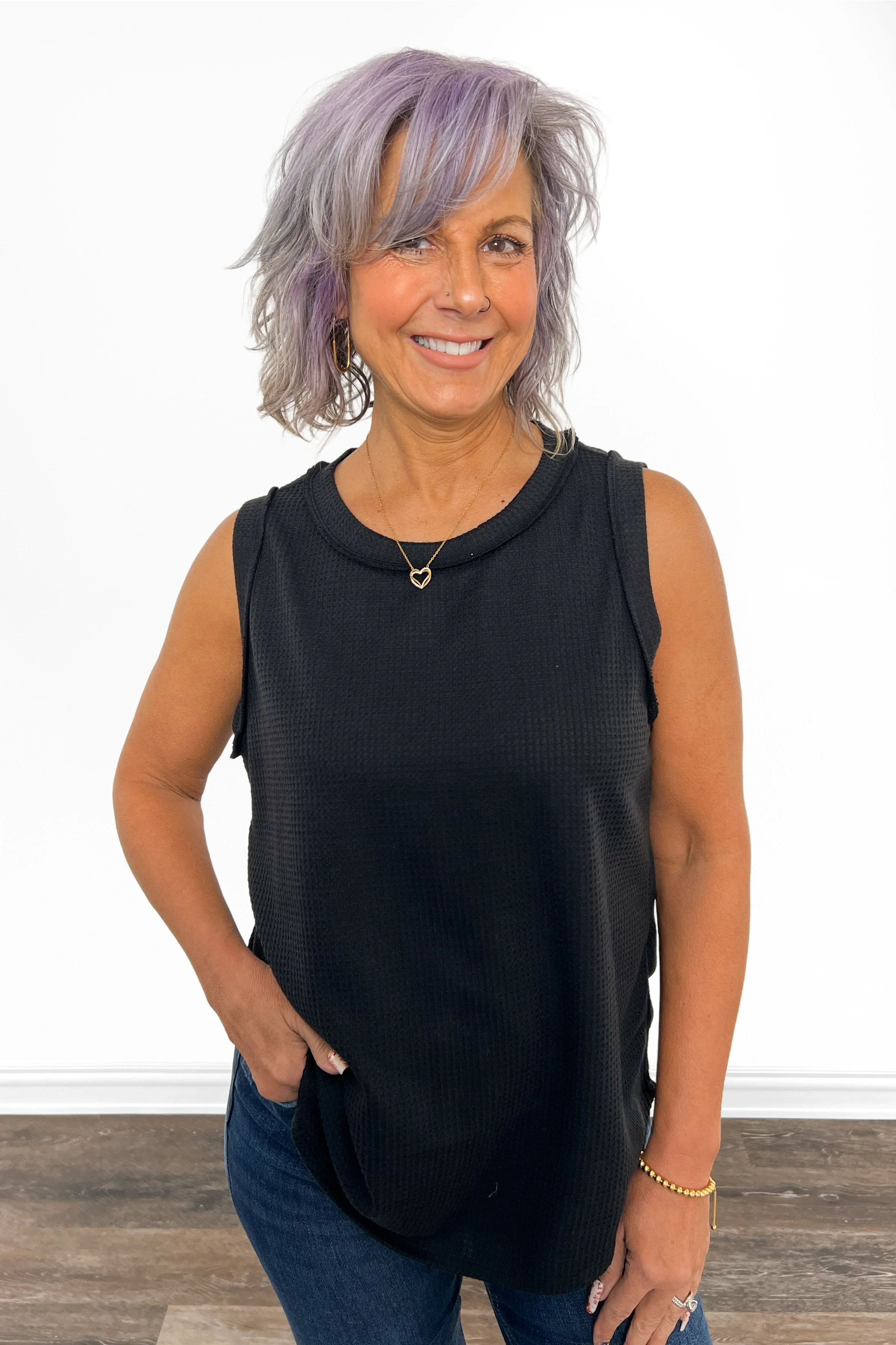 This Women's Casual Round Neckline Tank Top from Andree by Unit is the foundation piece every wardrobe craves. The relaxed fit waffle knit skims your frame while providing real coverage, and sturdy stitching at the neckline and sleeves means it'll stick around for the long haul. Layer it under your favorite blazer for instant polish, or let it shine on its own for effortless cool. With multiple colors waiting to join your collection, grab your favorites; or go ahead and get them all!